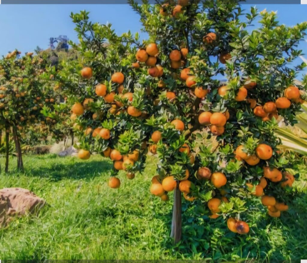 شجرة البرتقال في موسم النضج والقطاف