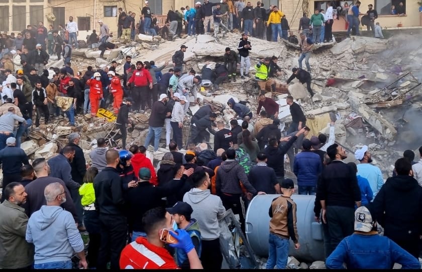 بين الركام تتداخل الصدمة بالأمل، وعيون تبحث عن ناجين تحت غبار الفاجعة.