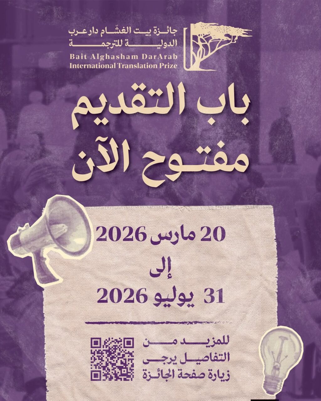 أعلنت جائزة بيت الغشّام دار عرب الدولية للترجمة عن فتح باب التقديم للدورة الرابعة لعام 2027، في خطوة جديدة لتعزيز حضور الأدب العربي في المشهد الثقافي العالمي عبر الترجمة إلى اللغة الإنجليزية.