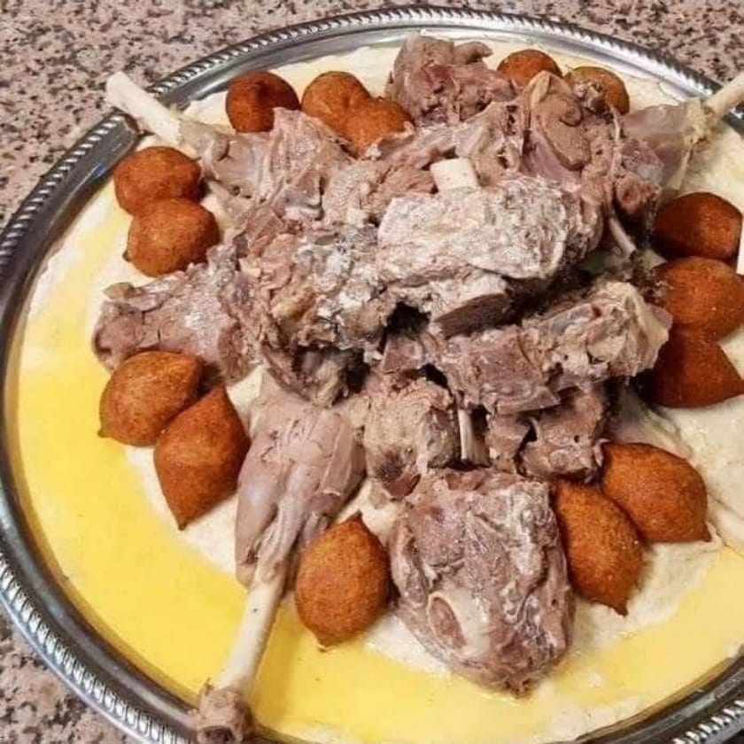 ​المليحي (سيد المائدة): هو طبق العزائم بامتياز، يتكون من البرغل المطهو بالسمن العربي، ويُسقى بمرق الجميد (المريس) الأصيل، ويُغطى باللحم البلدي المطهو جيداً، ويزين بالكبة المقلية.
