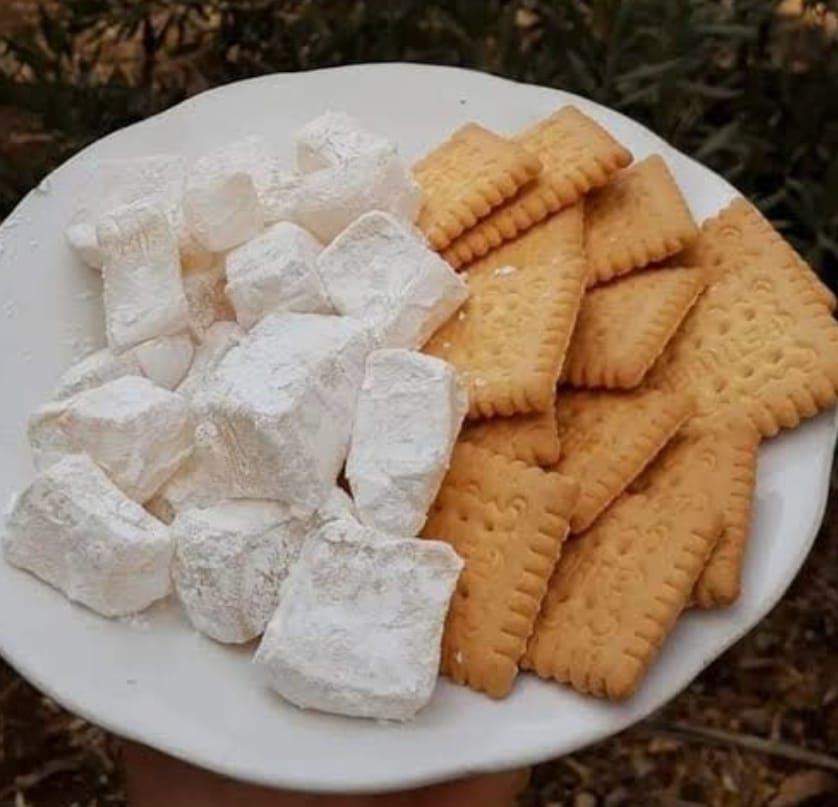 ​الحلويات: بجانب القطايف واللزاقيات، يحضر بقوة “البسكويت والراحة” كتحلية بسيطة ومحببة تجمع الصغار والكبار.