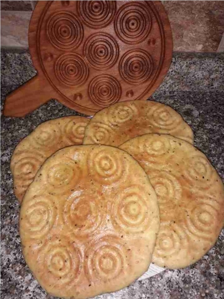 يخبز عادة في الأعياد ولكن لاغنى عنه في رمضان وهو خبز تراثي يفوح برائحة الأصالة، يُصنع من الدقيق والحليب وزيت الزيتون ، ويضاف إليه الشومر واليانسون وحبة البركة والسمسم والكركم، مما يعطيه طعماً فريداً ولوناً ذهبياً.