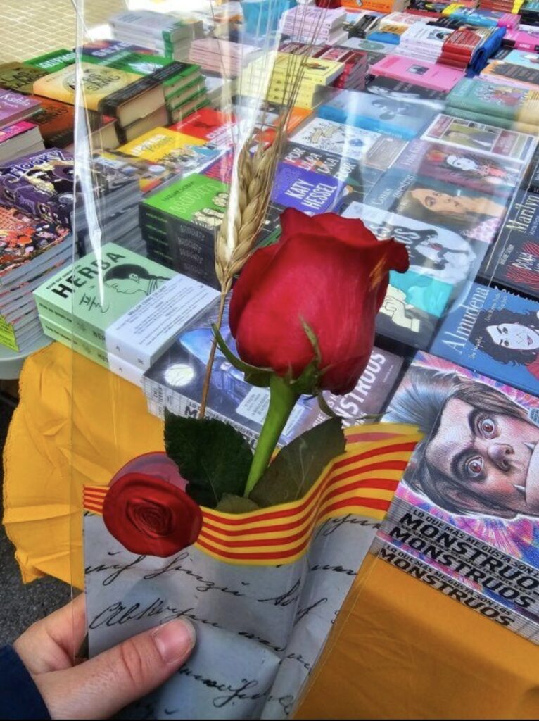 في “سان جوردي”، لا تبدو الكتب مجرد سلعة، ولا الورود مجرد زينة، بل يتحولان معًا إلى لغة مشتركة تختصر معنى المدينة: حبٌّ يُقرأ، وثقافةٌ تُهدى.