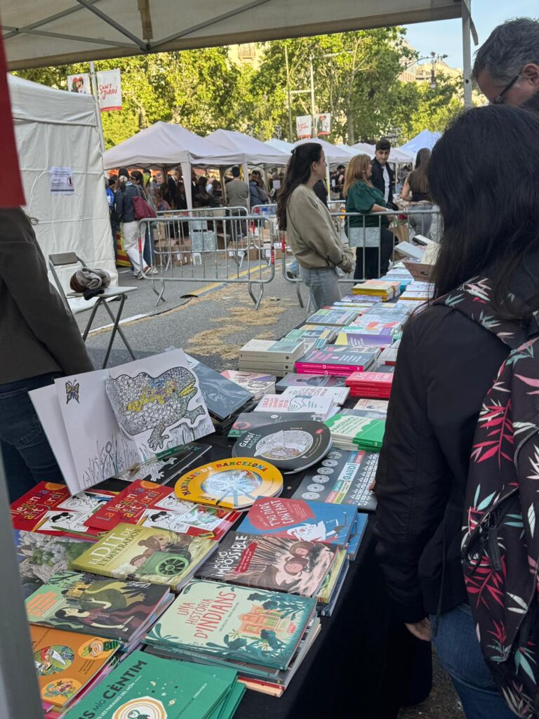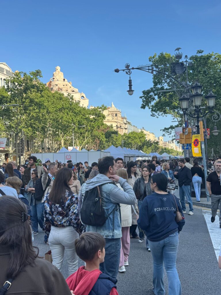 منذ ساعات الصباح، اكتظّت الشوارع الرئيسية، وعلى رأسها لا رامبلا وشارع Passeig de Gràcia، بعشرات الأكشاك التي تعرض آلاف العناوين الأدبية، فيما اصطفت الورود على الأرصفة في مشهد احتفالي لافت. ويحرص الكتّاب على التواجد لتوقيع مؤلفاتهم، في حين يتبادل السكان والزوار الكتب والورود ضمن طقس اجتماعي راسخ.