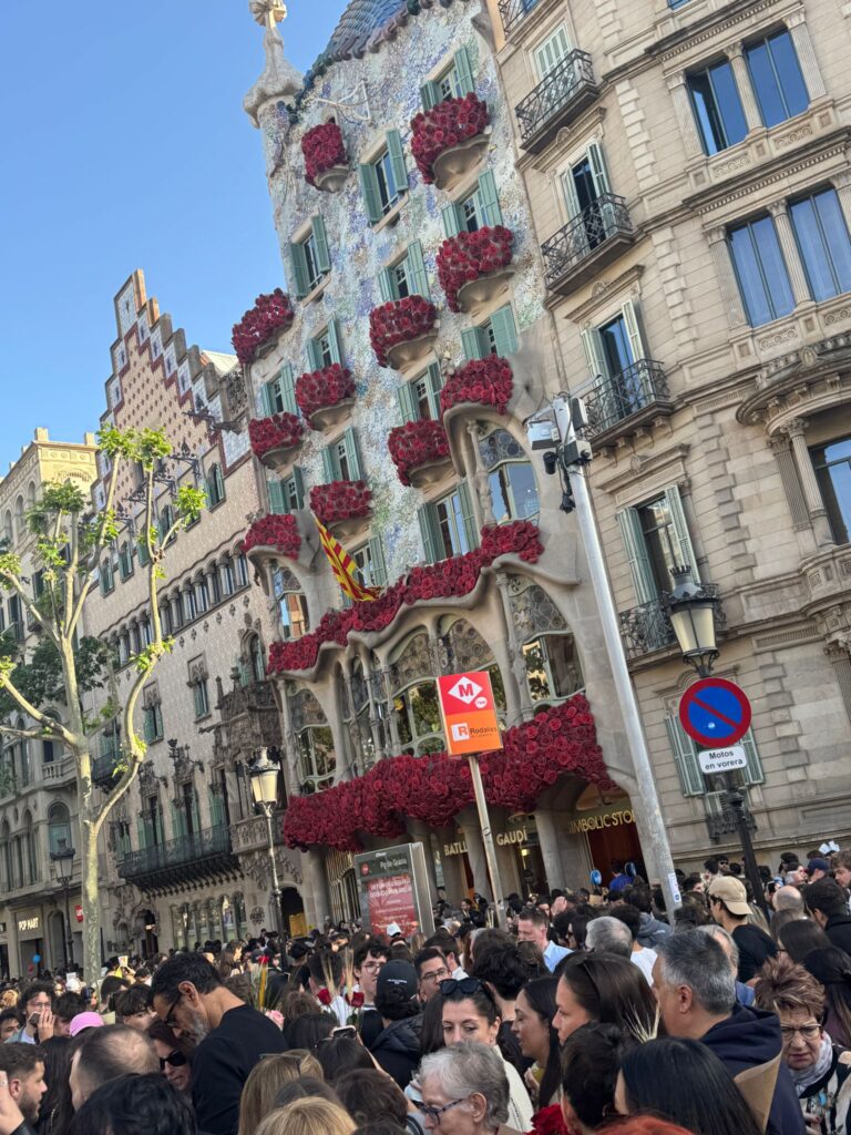 وتكتسب الواجهة المعمارية للمدينة بُعدًا بصريًا إضافيًا خلال المناسبة، إذ تتزيّن مبانٍ شهيرة مثل كازا باتيو (Casa Batlló) بالورود الحمراء، في مشهد يجسّد روح الاحتفال ويجذب آلاف الزوار.