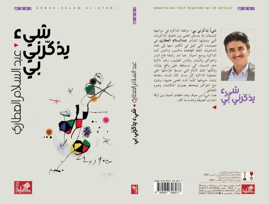 صدر حديثًا في عن دار الأهلية في عمّان كتاب النصوص «شيءٌ يُذكّرُني بي» للشاعر عبدالسلام العطّاري