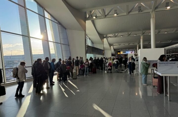 طوابير طويلة للمسافرين عند نقاط التفتيش الحدودية في مطار بروكسل مع عودة كثيفة من...