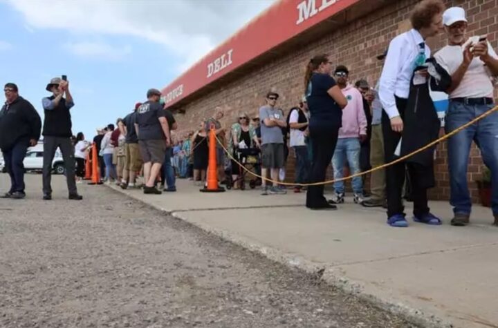 أشخاص ينتظرون افتتاح متجر لبيع الماريجوانا في ولاية مينيسوتا الأميركية، في صورة أرشيفية تعكس...