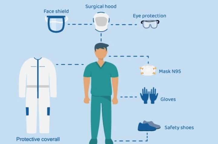 أدوات الوقاية الشخصية المستخدمة من قبل الطواقم الطبية، وتشمل الكمامات والقفازات والملابس الواقية، للحد...